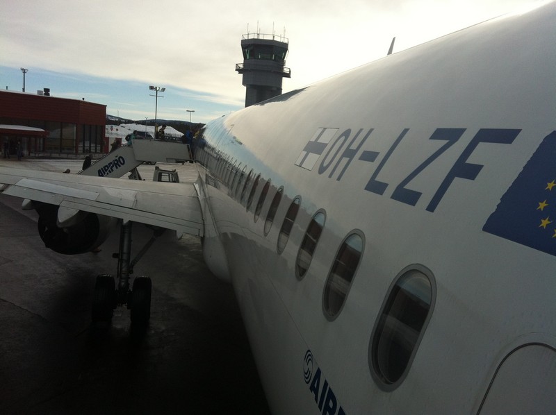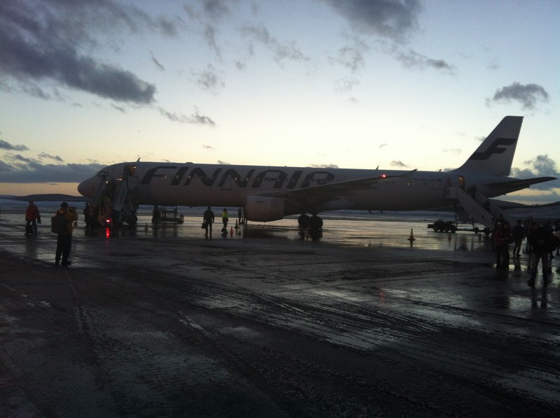 Die Reise verlief mit einem Flug ab Zürich via Helsinki und nach einem kurzen Zwischenhalt weiter nach Ivalo. Die Landung der Finnair in Ivalo verlief ziemlich unruhig, es schaukelte so stark, dass einige der Teilnehmer die Gesichtsfarbe wechselten und es im Flugzeug ziemlich ruhig wurde. Glücklicherweise dauerte dieser Zustand nicht allzu lange an und wir betraten unversehrt finnischen Boden.