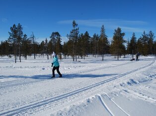 In Saarisälka erwartete uns ein grossartiges Loipennetz in einer wunderschönen Landschaft. Die Temperaturen waren für den hohen Norden angenehm kalt, zwischen -5°C und -15°C.