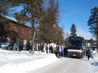 Nachdem wir alle Gepäckstücke inklusive aller Skisäcke in Empfang genommen hatten, erfolgte der Weitertransport per Bus nach Saariselkä. Im Hotel Santa's Tunturi bezogen wir die Zimmer und stürzten uns hungrig aufs Buffet.